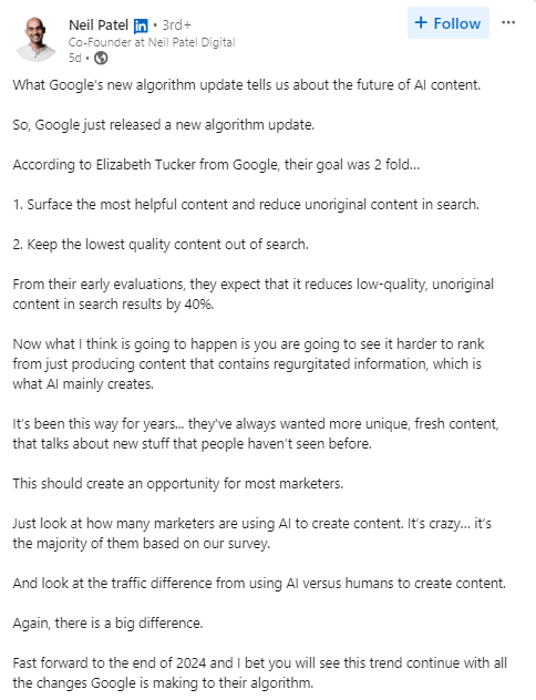 To say that the latest update from Google sent shockwaves throughout the business world would be a massive understatement. Within minutes, the internet was taken by storm, with millions of businesses and digital marketing experts sharing their feedback, concerns, and reactions to the rollout. Here are some of the top picks from LinkedIn, X, and other popular sources: